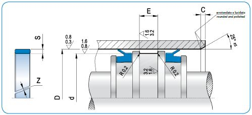 The profile presents chamfers on both sides for easier installation of rod and piston.