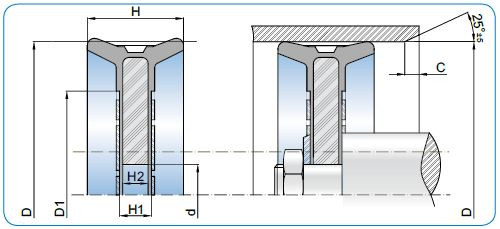 The MPP type piston seal is made of Nitrile Rubber vulcanised on a metal insert