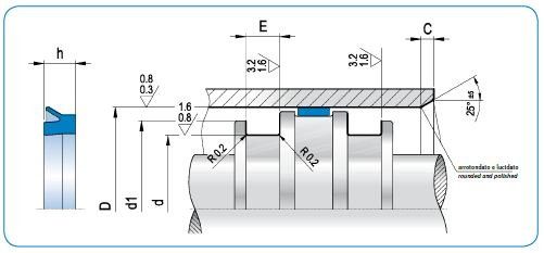 The standard material is polyurethane 90 Shore A (B0), alternatively 85 Shore A (A0). This seal is also available in NBR Nitrile70 (PSP/N).