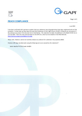 | FEP + FPM | GF | +204°C to -60°C | 75 | ||